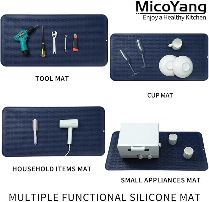 Silicone Dish Drying Mat for Multiple Usage,Easy clean,Eco-friendly,Heat-resistant Silicone Mat for Kitchen Counter or Sink,Refrigerator or Drawer Liner Navy Blue 5XL 36inches x 18inches