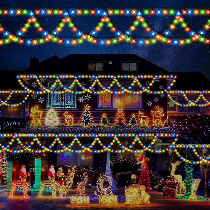 KAZOKU Christmas Lights Outdoor Indoor 40FT 380 LED Waterproof Christmas Tree Lights 8Modes Extendable Xmas Semicircle String Lights for Christmas Home Roof Eaves Garden Patio Yard Decor(Multicolor)