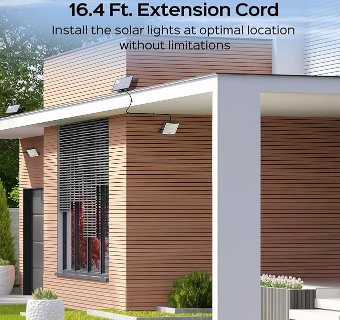 - Easy to Install: Motion lights for outside with 16.5 ft. cable for separate mounting to install the solar panel in a sunny place. Embedded design for one-piece mounting. Install the solar powered outdoor lights on walls, eaves, fences and other places.