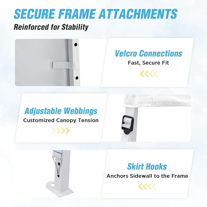 - ADJUSTABLE HEIGHT: Customize your canopy's height with ease using the 3-height pin leg system. Each leg can be individually adjusted to accommodate uneven ground or changing sun angles, for maximum shade throughout the day. The sturdy frame provides reliable protection against various weather conditions, making this canopy a versatile choice for any outdoor activity