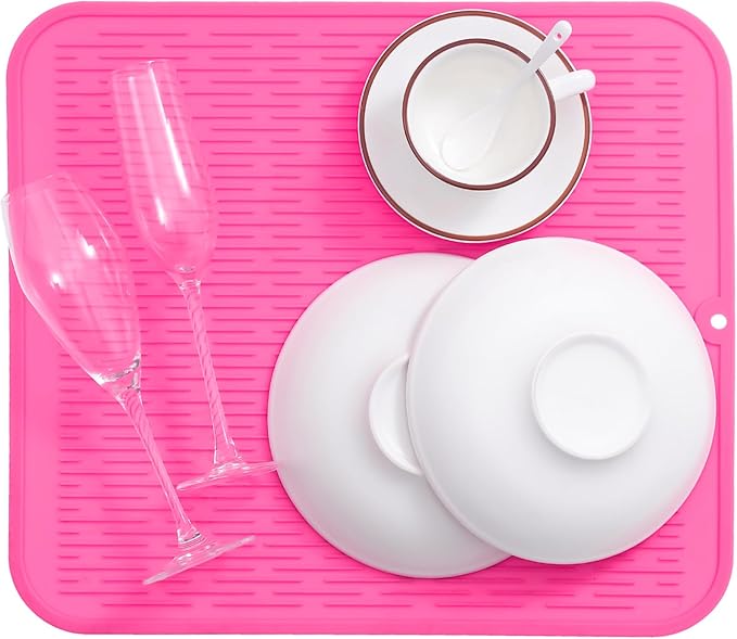 Silicone Dish Drying Mat for Multiple Usage,Easy clean,Eco-friendly,Heat-resistant Silicone Mat for Kitchen Counter or Sink,Refrigerator or Drawer Liner Rose XL 18 inches x 16 inches