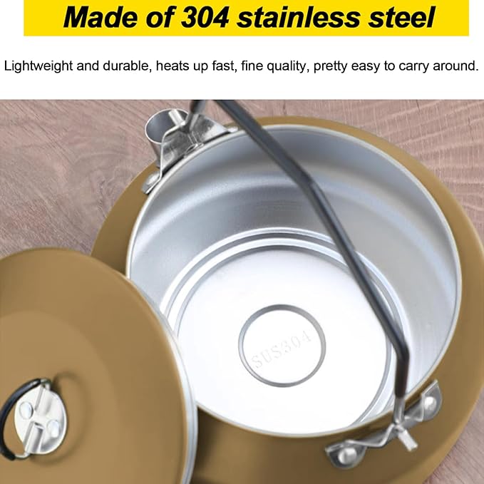 - 【FAST HEATING】Our camping kettle can be used on open fire and induction cooker. Metal bottom with high thermal conductivity for more uniform heating, camping kettles for boiling water, only about 3 to 5 minutes later, you can enjoy your steaming hot cup of coffee or tea.