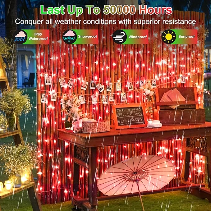 - 🌺Safe and Weatherproof: Our LED fairy twinkle lights are cool to the touch and energy-efficient, ensuring a safe and environmentally friendly lighting choice. Designed for year-round outdoor celebrations, these weather-resistant lights are built with high-quality materials and IP44 Weatherproof-Tech to withstand rain, snow, and other elements. Whether it's a summer BBQ or a spring garden party, rest assured that these lights will continue to shine brightly, no matter the weather.