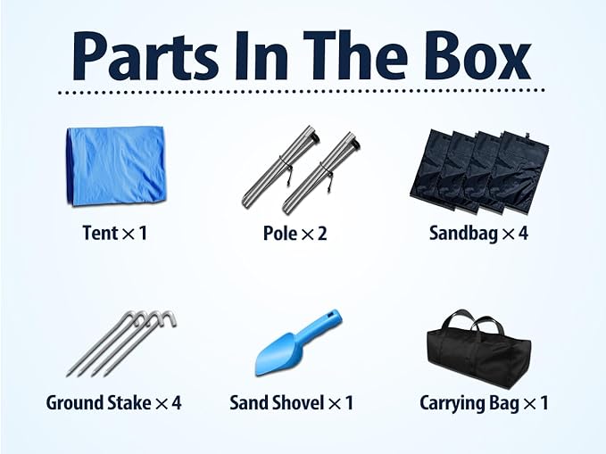 - 【 Effortless Sunshade Angle Control 】 - With the changing position of the sun, you can effortlessly adjust the angle of our beach tent to ensure maximum shade and comfort. No more struggling with heavy sandbags or labor-intensive digging - our innovative design makes adjusting the sunshade angle a breeze.
