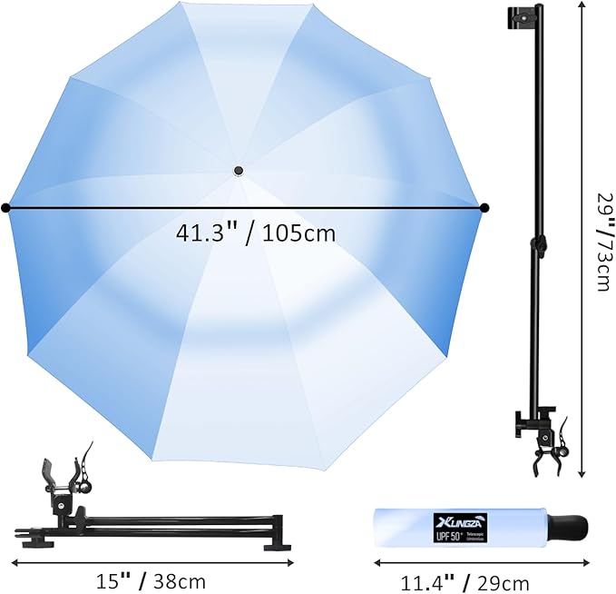 - [Easy to Set Up and Use] - With its simple yet effective design, this umbrella is a breeze to set up and use. The adjustable universal clamp makes it easy to attach to a wide range of surfaces, and the easy-to-use tilt mechanism allows you to adjust the angle of the canopy for maximum sun protection.