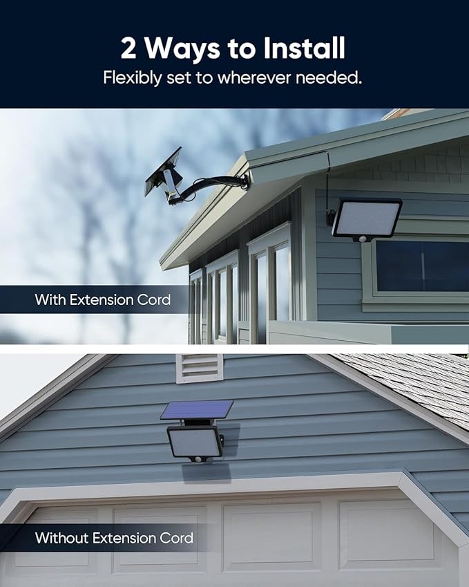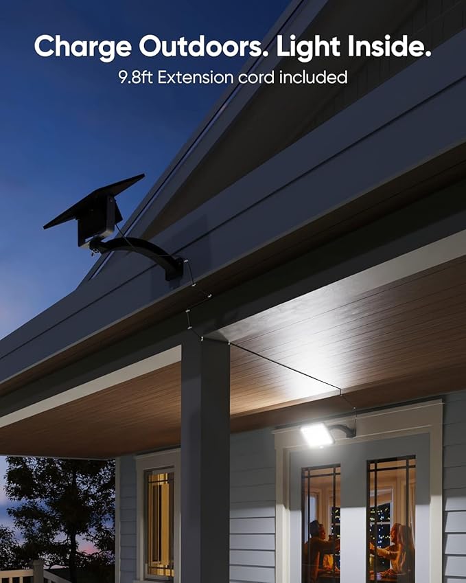 - Flexible Installation Options: Choose between two installation methods - with or without the extension cord - to tailor the light placement to your preferences. The extension cord allows indoor placement of the LED lamp panel while the solar panel remains outdoors to capture optimal sunlight.