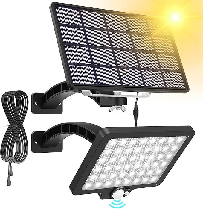 - Fast Charging, Long Lighting: Equipped with an enhanced solar panel, this motion sensor outdoor lights absorbs maximum sunlight during the day. The larger 5500mAh battery powers the outdoor flood lights for 6-10 hours, ensuring a well-lit space throughout the night.