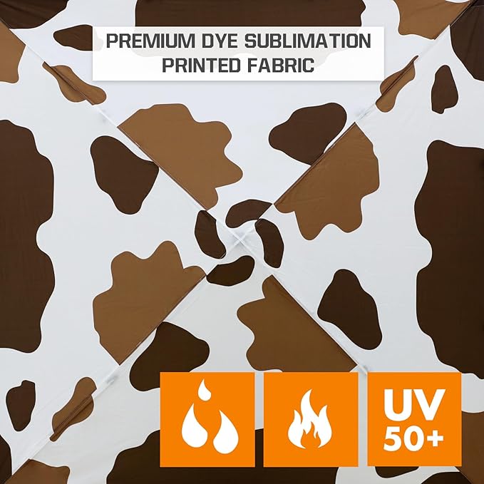 EAGLE PEAK 10x10 Slant Leg Pop-up Canopy Tent Easy One Person Setup Instant Outdoor Beach Canopy Folding Portable Sports Shelter 10x10 Base 8x8 Top (Brown Cow Print)