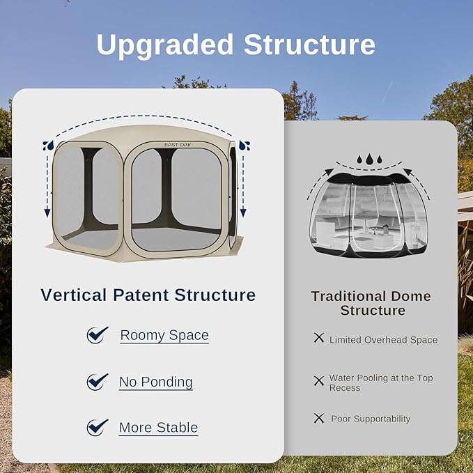 - ๐๐๐ด-๐ฃ๐ฟ๐ผ๐ผ๐ณ & ๐ฉ๐ฒ๐ป๐๐ถ๐น๐ฎ๐๐ฒ๐ฑ: The EAST OAK portable pop-up screen teent features a 4-sided B3 fine mesh design for 360ยฐ perfect ventilation to protect you from mosquitoes, bugs and anything the outdoors can throw at you. The tent body is made of high-quality Oxford fabric with anti-UV silver coating to achieve all-day UPF 50+ UV protection. Perfec for picnics, camping, and the beach