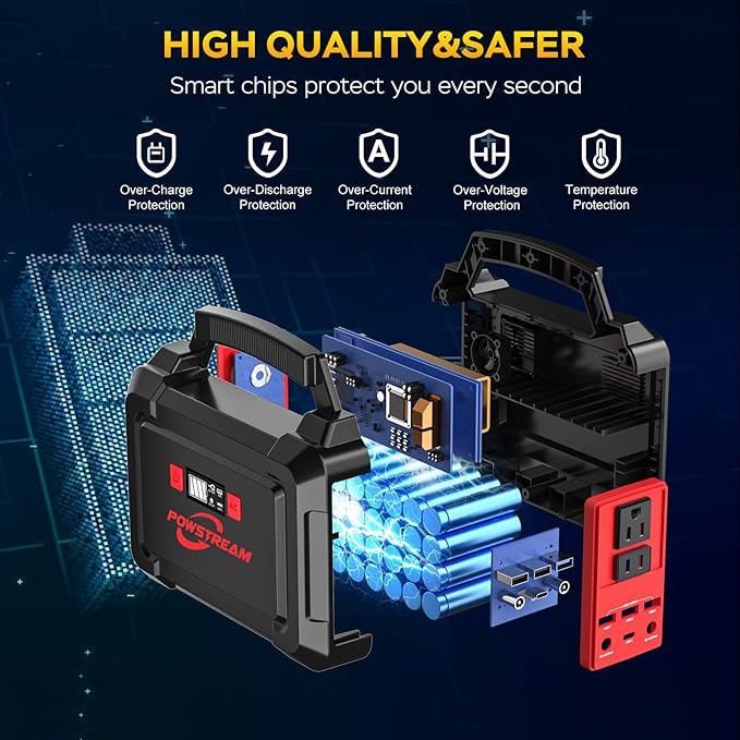 - SOLAR GENERATOR WITH SOLAR PANEL: The combination of POWSTREAM 60W solar panel and P188 portable power station is the ideal choice for overnight camping or long-term off-grid living. Its high-capacity design ensures a lasting power supply for smartphones, tablets, laptops, headphones, and other outdoor camping equipment, making it perfectly suited for various outdoor scenarios such as tent camping, road trips, and emergency situations where continuous power support is needed.