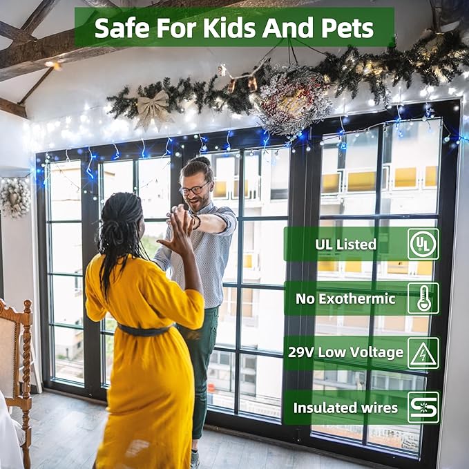 - Unleash Holiday Magic: Illuminate every corner with our stunning 792 LED icicle lights! Stretching 82 feet and featuring 176 enchanting drops, they create a dazzling display with their diamond-shaped lenses. Perfect for rooftops, fences, and trees, these lights turn your space into a festive wonderland. Spread joy and warmth with a magical touch that makes every holiday gathering truly unforgettable