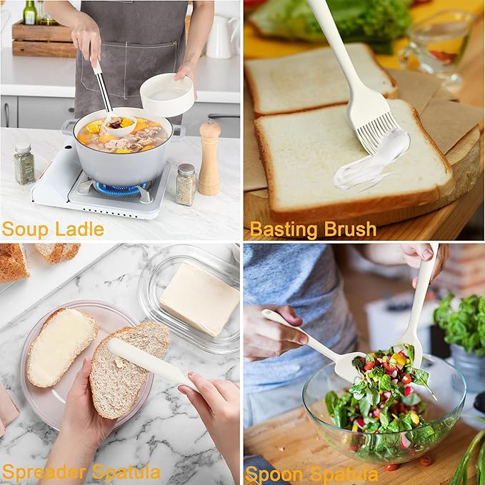 - Scratch resistant: silicone kitchen gadgets ideal for nonstick cookware, flexible silicone head prevent your pots and pans from scratching, extend their using life, solid construction with white sleek appearance looks generous, adding a touch of elegance to your kitchen décor