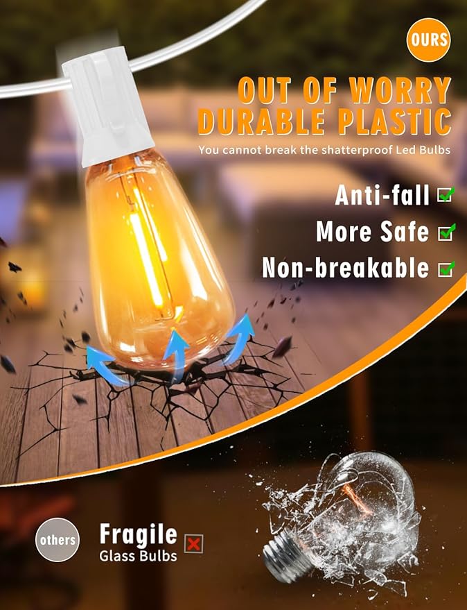 - Shatterproof & Waterproof Colorful String Lights - Achin edison string lights set with plastic shatterproof bulb, it will keep you away from safety hazards caused by broken glass. Multi colored outdoor string lights waterproof can be used all year round