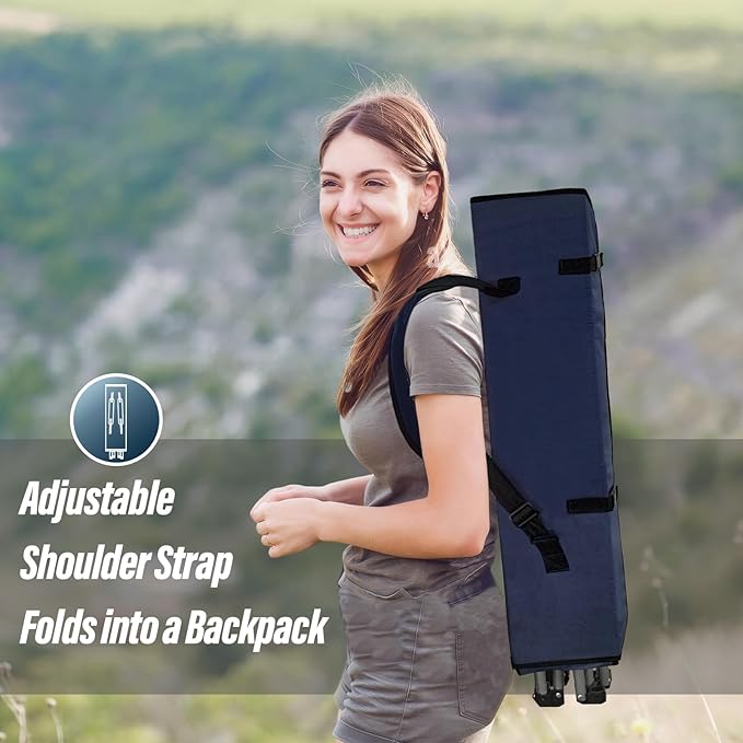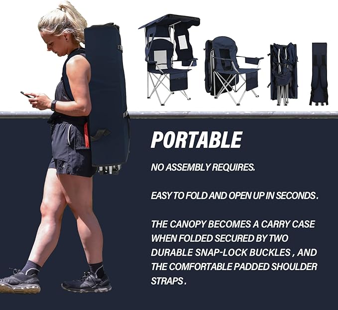 - 【EASY TO CARRY】:The canopy becomes the carry case when folded secured by a durable snap-lock buckle, and the comfortable padded straps make the folding chair as easy to carry as a backpack