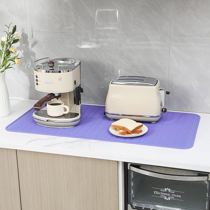 Silicone Dish Drying Mat for Multiple Usage,Easy clean,Eco-friendly,Heat-resistant Silicone Mat for Kitchen Counter or Sink,Refrigerator or Drawer Liner Light Purple 5XL 36inches x 18inches