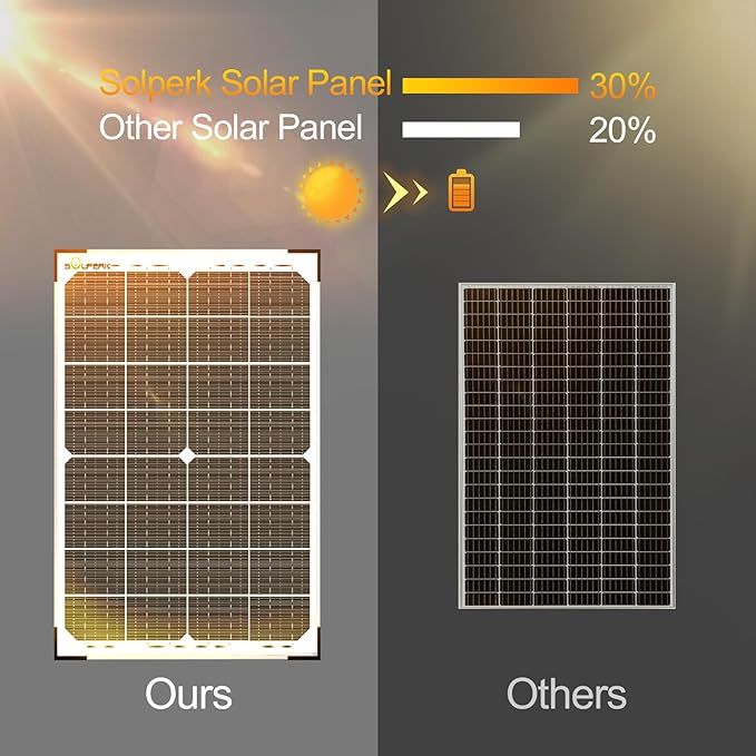 - 【360°Adjustable】The SOLPERK solar charger kit comes with a 360° adjustable bracket, allowing you to easily adjust it for optimal sunlight exposure. It can be easily installed on the ground, wall, or roof to maximize power generation. Additionally, the four corners of the solar panel are edged for added protection during use, ensuring the safety of the product and preventing scratches.