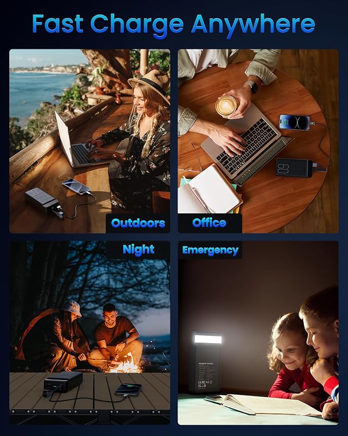 - 60000mAh High Capacity Power Bank, Always Ready to Charge -- 60000mAh portable charger serves as your personal "power manager," effortlessly charging your iPhone 16 over 16.5 times and your Samsung S24 15 times. Whether it's long distance travel, camping, hiking, fishing, sunny beaches, or handling emergencies and hurricane disaster essentials, this large capacity battery pack gear can last you a whole week, say goodbye to anxiety and enjoy the fun【NOTE: 60000mAh powerbanks are not allowed on airplane!】