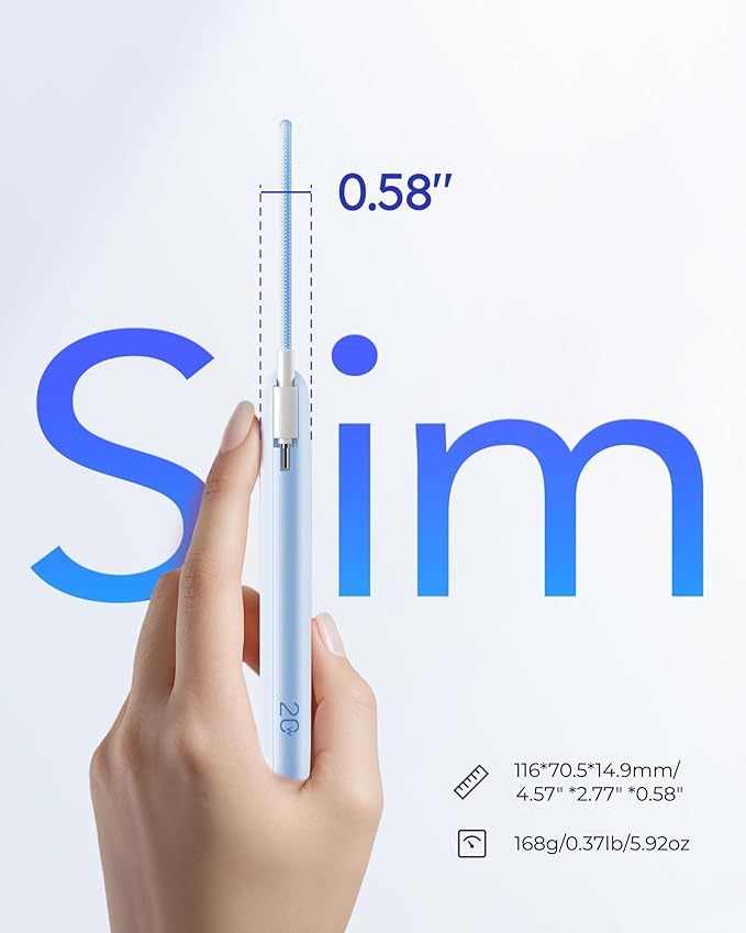 - Ultra-Thin & Portable: Measuring just 4.57 x 2.77 x 0.58 inches and weighing only 5.9 oz, this slim portable charger easily fits in your pocket or bag, perfect for travel, business trips, or everyday use.