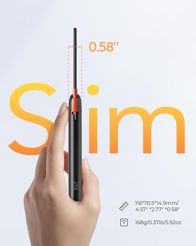 - Ultra-Thin & Portable: Measuring just 4.57 x 2.77 x 0.58 inches and weighing only 5.9 oz, this slim portable charger easily fits in your pocket or bag, perfect for travel, business trips, or everyday use.