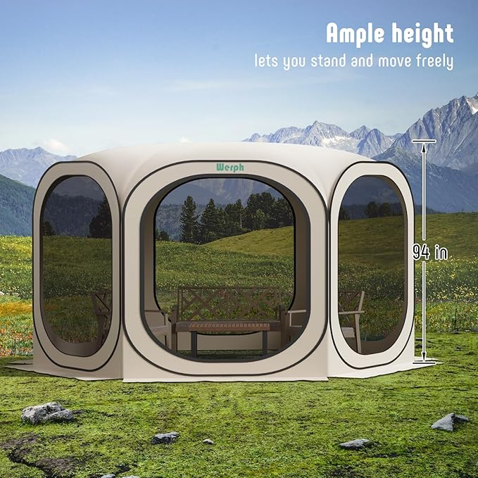 - Recommended Uses For Product : The Werph Screen Tent Camping Canopy 12x12 is recommended for providing shade, protecting users from insects, and creating a comfortable outdoor shelter activities such as camping, patio gatherings, lawn & garden use, parties, or other recreational events. The Werph Screen Tent Camping Canopy 12x12 is recommended for providing shade, protecting users from insects, and creating a comfortable outdoor shelter activ… See more