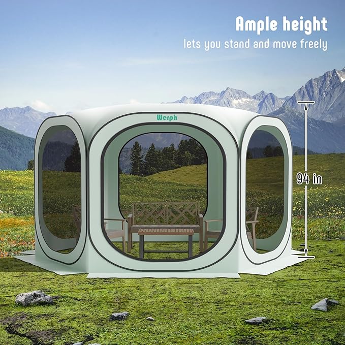Pop Up Screen Tent Camping Canopy 12x12, Screen Room with Mosquito Net,Outdoor Tent Canopy,Pop Up Gazebo for Lawn & Garden,Parties or Camping,Green