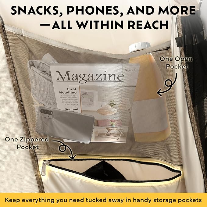 - DETAILS THAT MATTER – LIGHT HOOKS & STORAGE POCKETS Comfort meets clever design. Hang a lantern from the ceiling hook, string up LED lights along the edge loops, and stash your essentials in handy built-in storage pockets—this tent’s got all the little details that make a big difference. And with the modern color option and a clean, refined look, it’s not just practical—it’s seriously good-looking too.