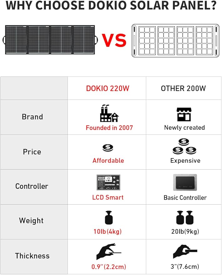 DOKIO 200W 36V Black Portable Solar Panels Kit Folding Solar Charger for 24v Batteries/Power Station AGM LiFePo4 RV Camping Trailer Car Marine