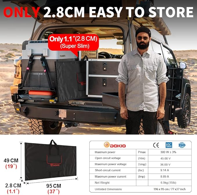 DOKIO 300W 36V Black Portable Solar Panels Kit Folding Solar Charger for 24v Batteries/Power Station AGM LiFePo4 RV Camping Trailer Car Marine………