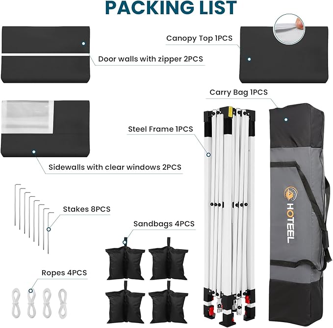 HOTEEL 10×10 Pop Up Canopy with 4 Sidewalls, UV 50+ and Waterproof Canopy Tent 10×10, Thickened Frame, Large Space Easy Pop Up Canopy, Outdoor Canopy for Weddings, Beaches, Parties, Patio (Black)