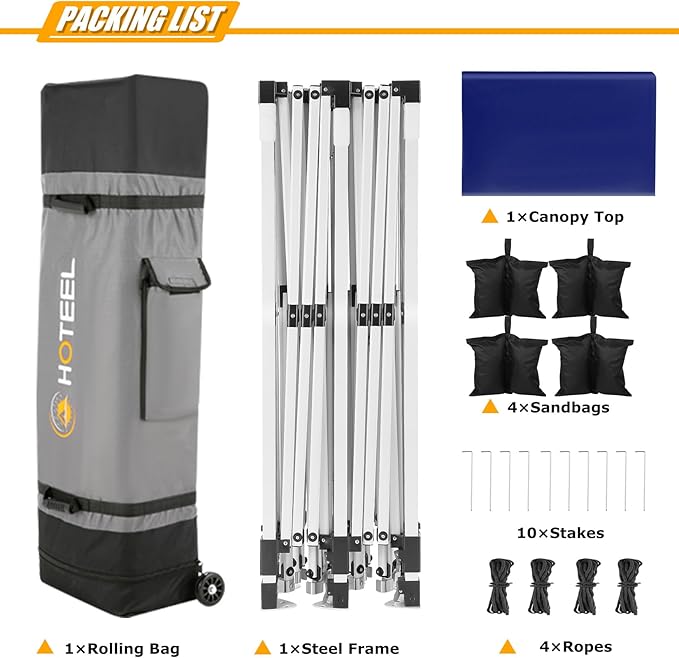 - Easy Pop Up Canopy: The steel frame of the easy pop up canopy 10x20 is a fixed structure, so there is no need to install the frame manually. You just need to expand the scalable frame and tie the tarp on it. 2-4 people can easily complete the installation. Three heights are adjustable (75 inches, 79 inches, and 83 inches).
