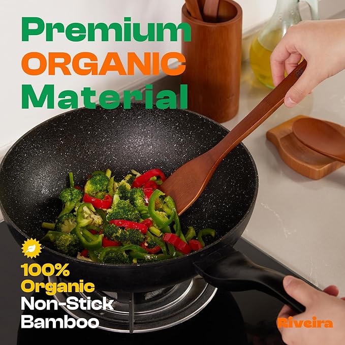 - Versatile and Eco-Friendly Premium Brown Bamboo Utensils – Our kitchen utensil and wood spoons are made from environmentally friendly premium brown bamboo, which is long-lasting and sustainable. The wood cooking utensils set is designed for all cooking styles, offering tools for stirring, serving, and flipping. These wooden utensils for cooking are perfect for non-stick cookware, providing a scratch-free experience. These wood cooking utensils make a great addition to your kitchen.