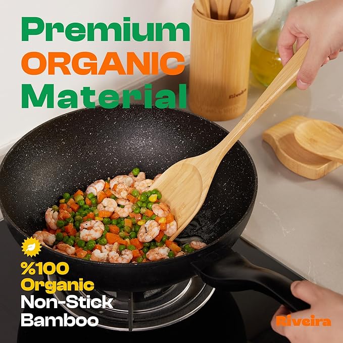 - Versatile and Eco-Friendly Brown Bamboo Utensils – Our kitchen utensil and wood spoons are made from environmentally friendly brown bamboo, which is long-lasting and sustainable. The wood cooking utensils set is designed for all cooking styles, offering tools for stirring, serving, and flipping. These wooden utensils for cooking are perfect for non-stick cookware, providing a scratch-free experience. These wood cooking utensils make a great addition to your kitchen.