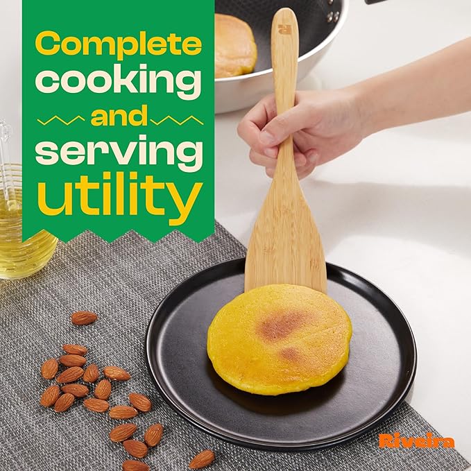 Riveira Brown Bamboo Wooden Spoons for Cooking Set of 6 – Natural Brown Bamboo Wooden Cooking Utensils, Wooden Spatula, Wooden Spoon - Premium Quality Wooden Utensil Set for Non-Toxic Cooking