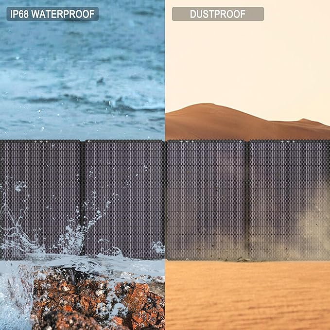 - 【Waterproof and Durable】SOKIOVOLA Portable Solar Panels are made of advanced ETFE lamination process.SOKIOVOLA outdoor solar panels are made of waterproof dragon dance cloth, which can withstand any outdoor conditions.
