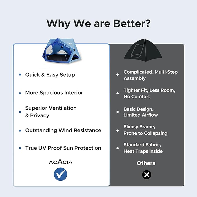 ACACIA Beach Tent Sun Shelter | 4-Person Portable Camping Tent with UPF 50+ Protection | Easy Setup Pop up Sun Shade | 10×10ft Privacy Sunshade for Camping & Backyard