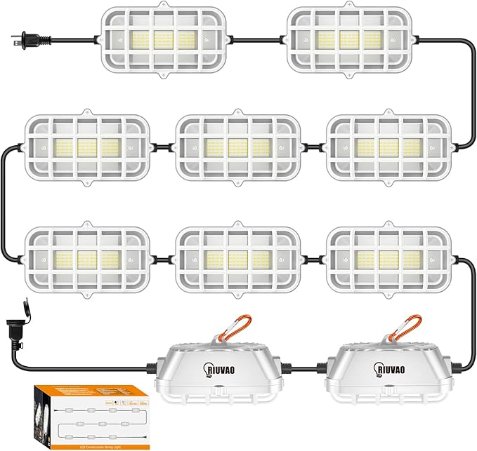 - 【Material Upgrade】Construction string light adopted the folding process of high heat conductivity and light stamp aluminum material to increase the area of heat dissipation and accelerate heat dissipation.improves product durability extending the service life.IP67 waterproof rating,IK07 protection.