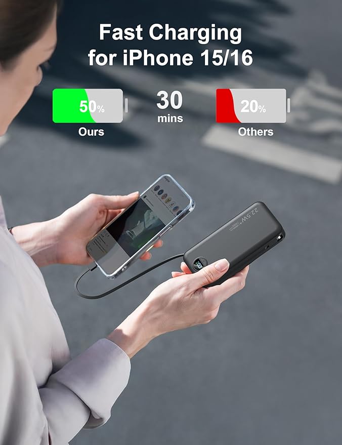 - 【Quick Speed Charging Power Bank】The Type C port of the portable power bank supports up to 20W fast charging output, which can quickly charge your iPhone 15 /16 device and save charging time for you.It can charge up to 5 devices simultaneously.