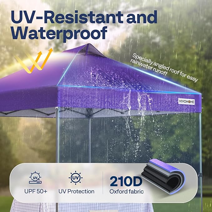 - FUNCTIONAL CANOPY DESIGN: Measuring 10 x 10 ft, this premium canopy is crafted with durable 210D Oxford fabric, offering exceptional shade and coolness for outdoor comfort; Its steeper slope, longer top, and waterproof strips effectively prevent water pooling, ensuring dryness and full protection even in rainy weather; Perfect for elevating outdoor events, from garden parties to festive gatherings
