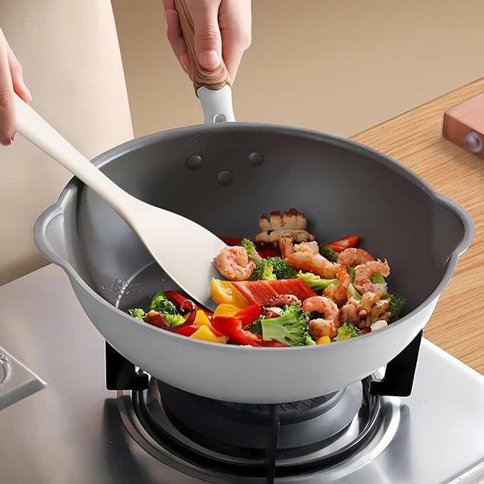 - Nonstick Cookware Friendly: The thickened silicone head of this silicone kitchen utensils set is soft and elastic; ideal for silicone utensils for cooking with nonstick pans; makes close contact with the pan surface without scratching the nonstick coating; thus extending the pan's service life; the silicone handle with moderate size offers a comfortable grip and blocks heat transfer; making it easy to flip; strain dishes or serve soup