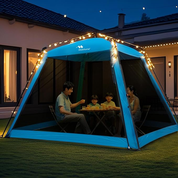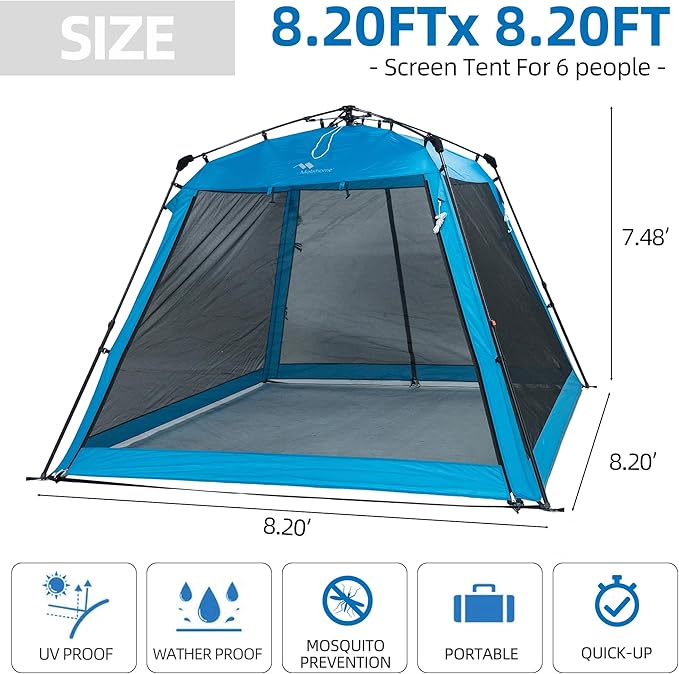 8.2'x8.2' Pop Up Canopy, 2025 Upgraded Outdoor Screen House Tent, Portable Folding Instant Camping Canopy, Easy Set-up Canopy -Blue
