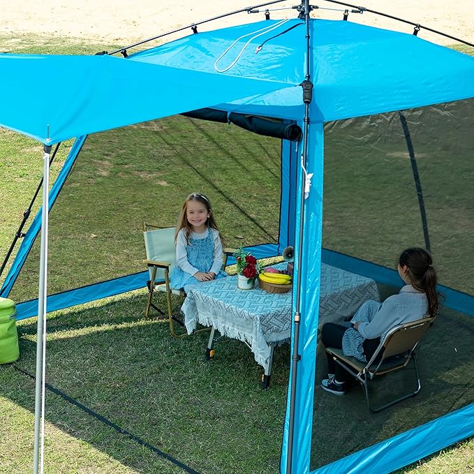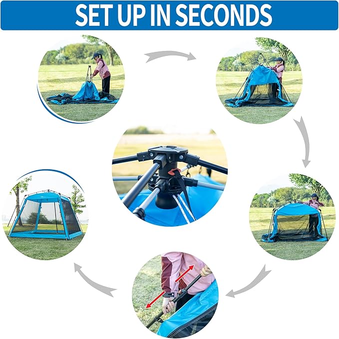 - INSTANT QUICK UP CANOPY TENT - Special hub system design for single operation - The fastest and easiest set up and take down; Roll it out, lock your poles, pull the drawstring and QUICK UP the canopy screen House, NO MORE complicated operation!