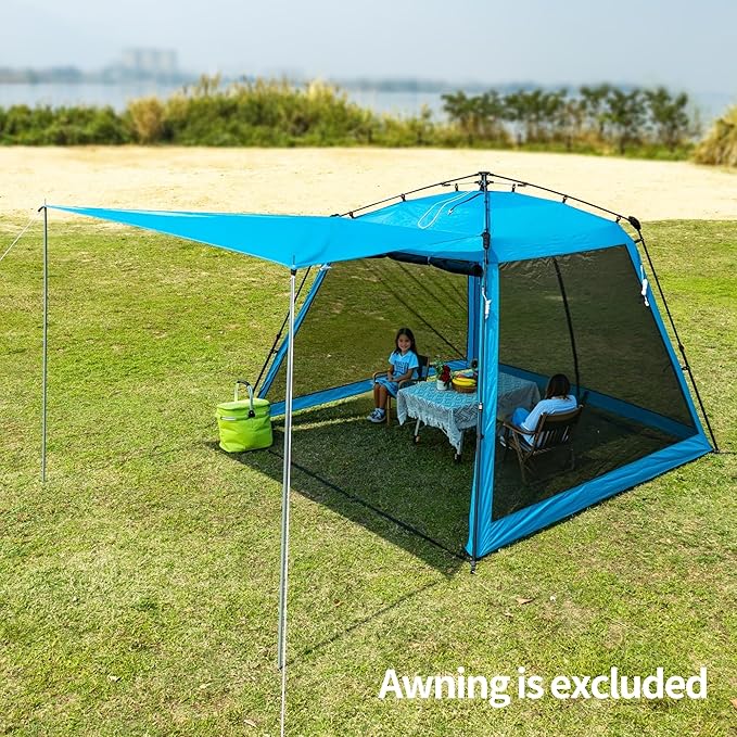- INSECT PROOF & VENTILATION:High density mesh keep the Insect and pest far away from you, 2 big zipper door provide more convenient entrance per you need, better breathable with full four side mesh, the sidewall and awning could be attached together, easy setup, endless fun!!