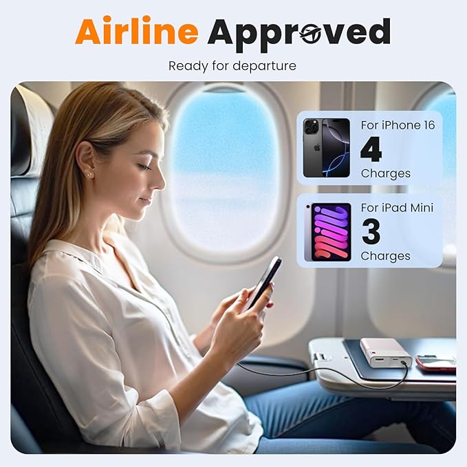 - 22.5W PD Super Fast Charging – Speed Without Sacrifice. 65% charge in 30 mins for iPhone 16 (3x faster than 10W). Advanced heat dissipation in our metal casing prevents slowdowns, keeping your power bank charged safely at full speed