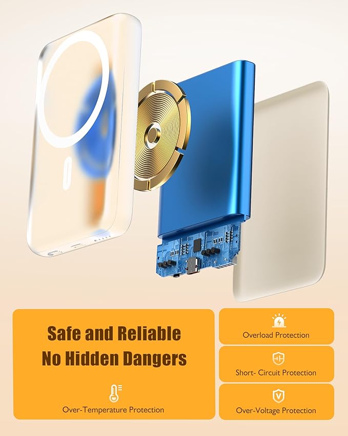 - 【Snappy way to charge】Built-in strong magnets allow you to snap and charge iPhone 16 & 15 & 14 & 13 &12 compatible with MagSafe. While charging, you can freely and effortlessly take selfies with the case firmly attached to your phone. The built-in strong magnets keep the magnetic power bank in place and prevent slipping.