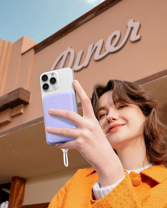 - 【Snappy way to charge】Built-in strong magnets allow you to snap and charge iPhone 16 & 15 & 14 & 13 &12 compatible with MagSafe. While charging, you can freely and effortlessly take selfies with the case firmly attached to your phone. The built-in strong magnets keep the magnetic power bank in place and prevent slipping.