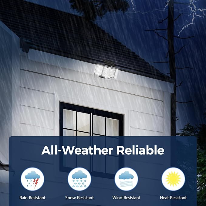 - 【Excellent Weather Resistance】Our solar security lights are resistant to rain, frost, and heat. You don’t need to feel doubts or distress; the quality of the product and our support are both trustworthy. There are 4 small ventilation holes at the bottom of the light fixture, which avoid the problem of mist or water seeping in and not being able to drain out, commonly found in other solar lights. Note: Please do not install upside down.