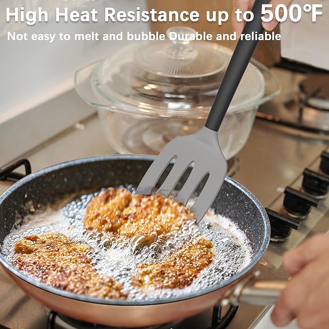 - [Versatile Spatula Set of 3]: This cooking utensils set includes a Large Fish Spatula, Slotted Spatula, and Solid Spatula—ideal for flipping eggs, pancakes, burgers, and frying fish without scratching your kitchenware