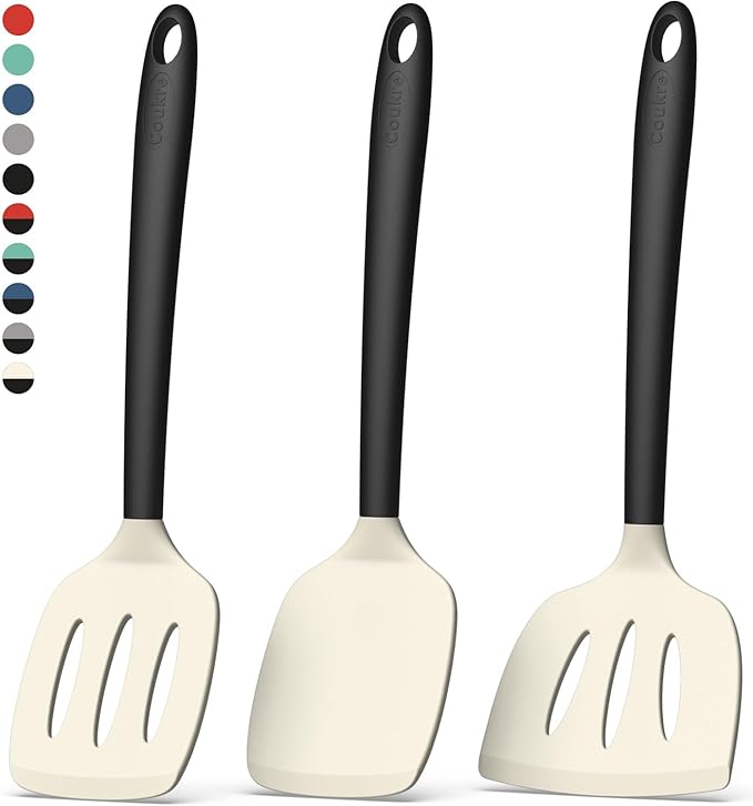 Coukre Silicone Spatula Set of 3, High Heat Resistant, BPA-Free, Kitchen Utensils, Fish Spatula, Solid & Slotted Turner for Non-Stick Pans, Flipping Eggs, Pancakes, Fish, Burgers (3, Beige)