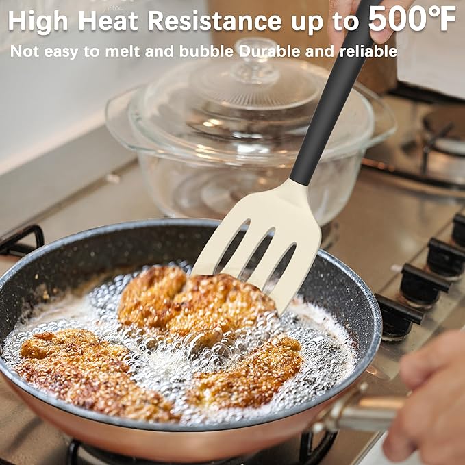 - [Versatile Spatula Set of 3]: This cooking utensils set includes a Large Fish Spatula, Slotted Spatula, and Solid Spatula—ideal for flipping eggs, pancakes, burgers, and frying fish without scratching your kitchenware