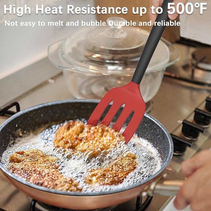 - [Comfortable Silicone Handle]: These silicone kitchen utensils are designed with a sturdy plastic core and thickened silicone handle for a firm, heat-insulated grip, the slim head ensures precise control